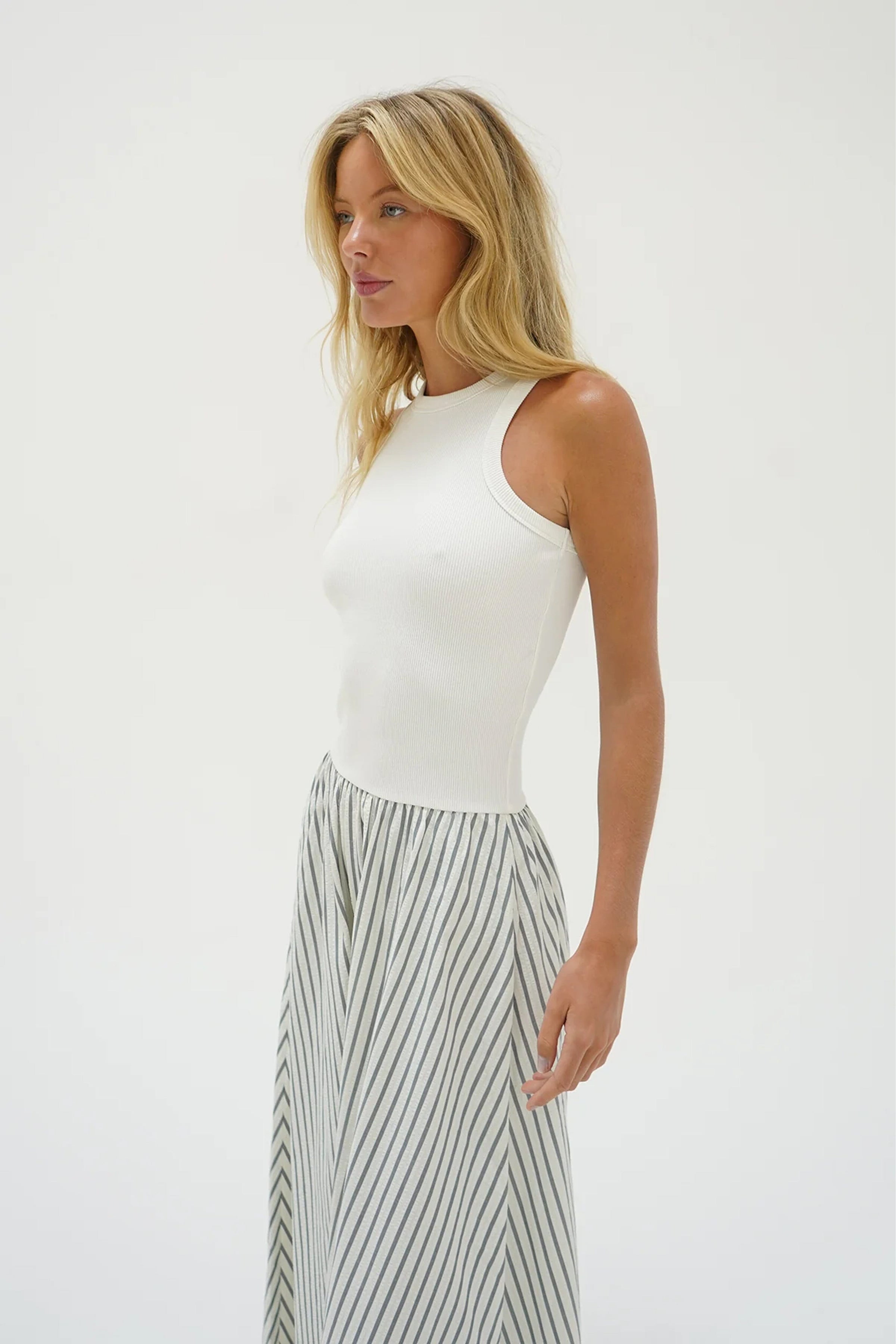 The Hart Dress has a cotton ribbed top and woven bottom.