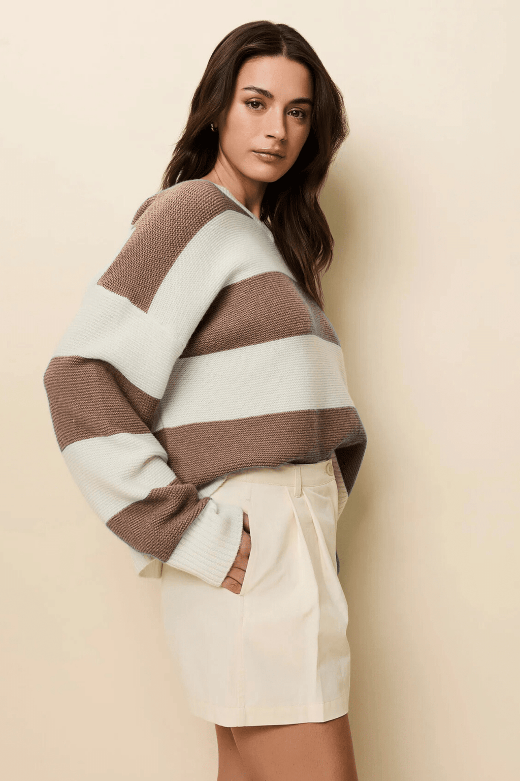 ONLINE ONLY | Polo Stripe Sweater - Pink/Cream