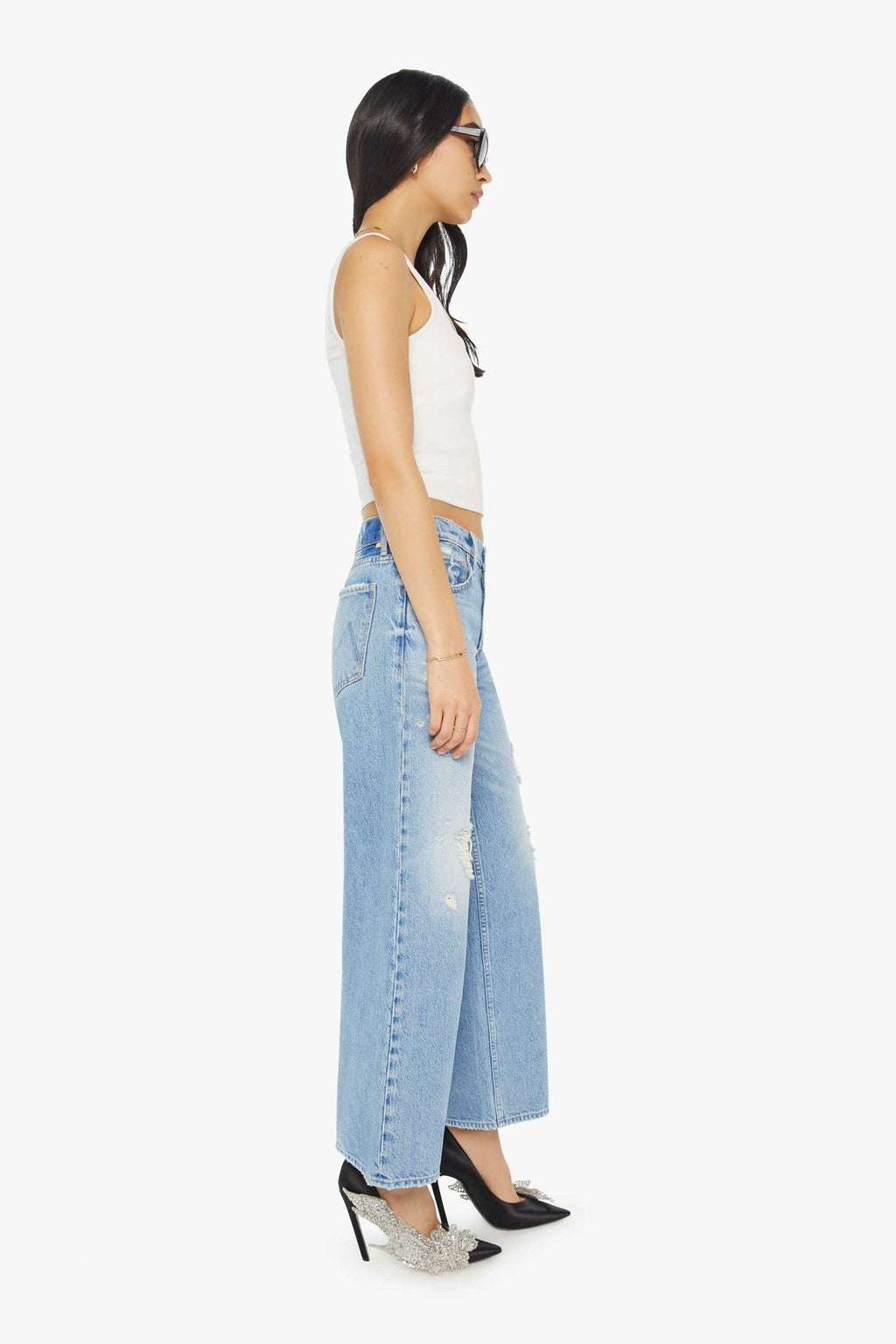 MOTHER | High Waisted Spinner Zip Heel - Ripped Off