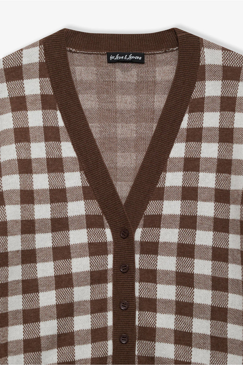 FOR LOVE & LEMONS | Gingham Knit Cardigan - Brown