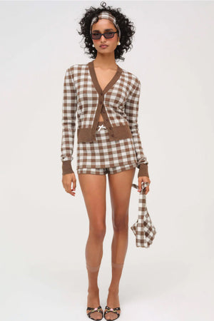 FOR LOVE & LEMONS | Gingham Knit Cardigan - Brown