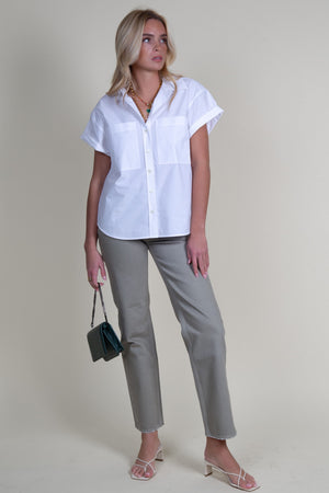 FRAME | Short Sleeve Cuffed Button Up - White