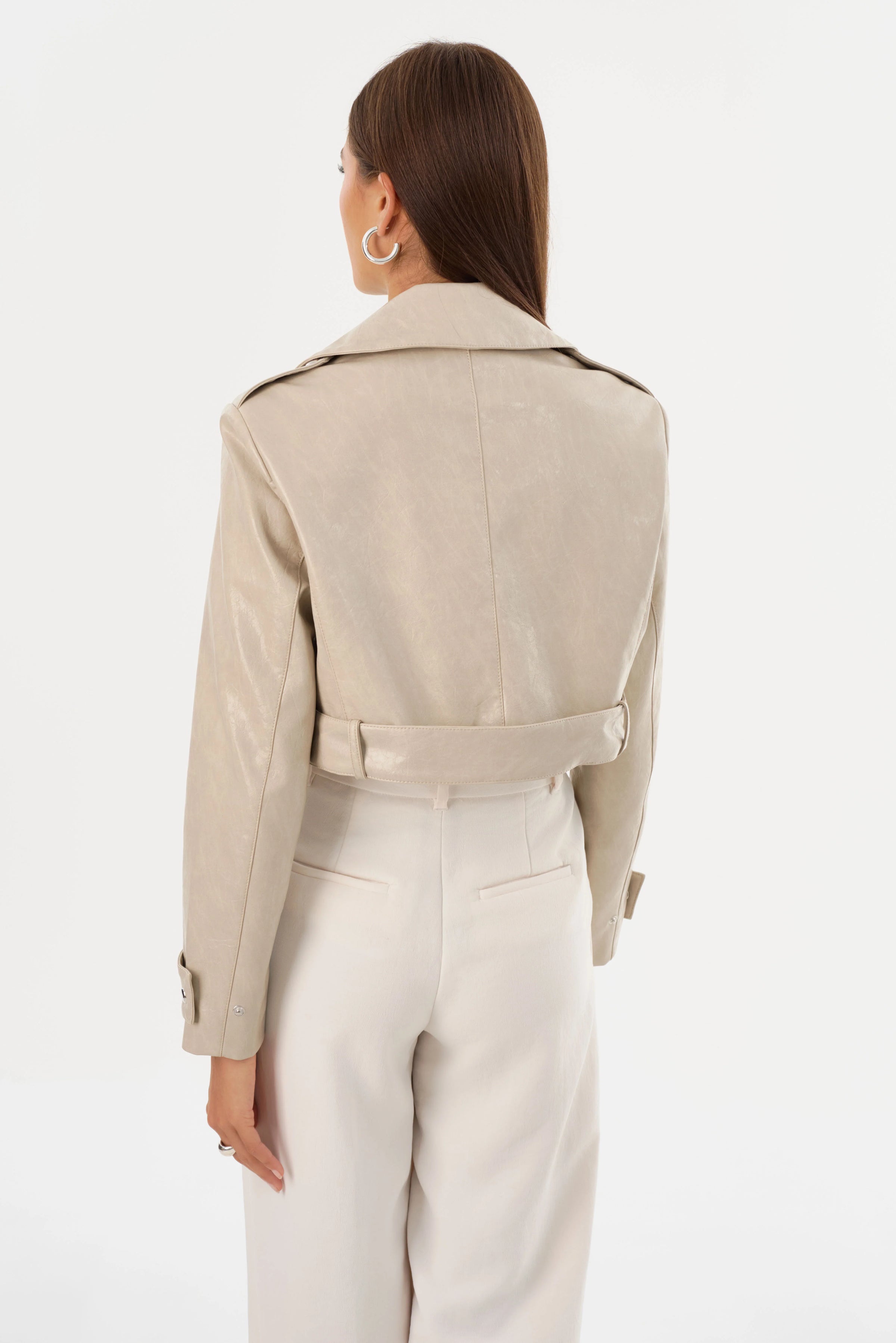 Elevate your wardrobe with the KATIJA Convertible Faux Leather Trench—a model of versatility and style. This innovative piece seamlessly transforms from a sleek trench coat to a chic cropped jacket. With clean lines, a single-breasted collar, and snap closures, it strikes the perfect balance between polish and practicality. Ideal for seasonal transitions, the KATIJA is a must-have for any fashion-forward collection.